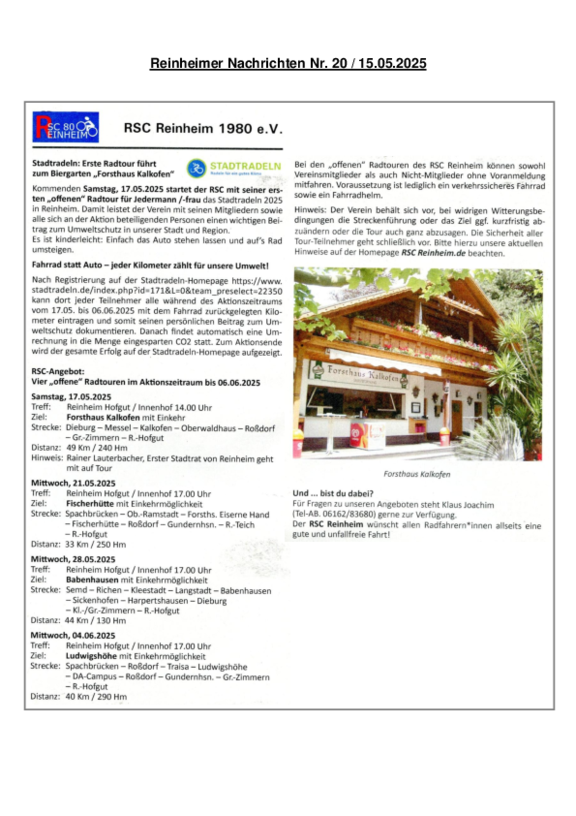 Reinheimer Nachrichten vom 15.05.2025